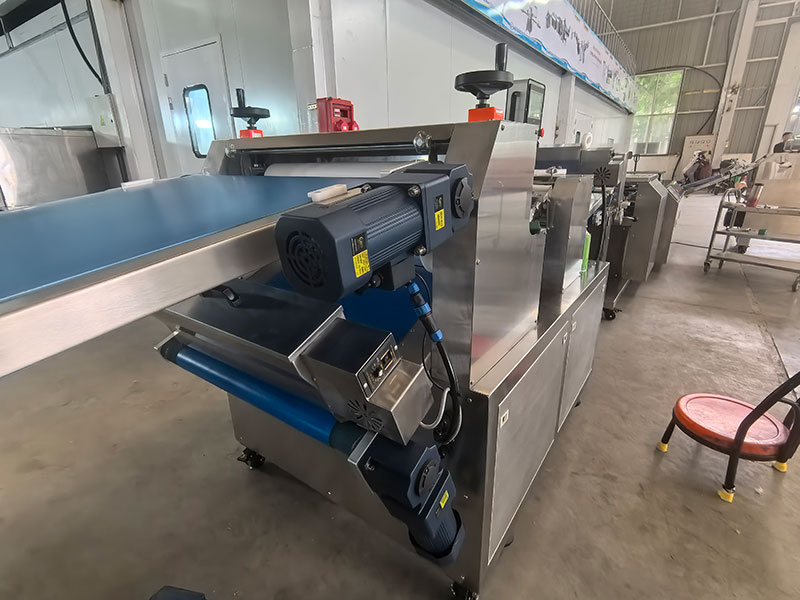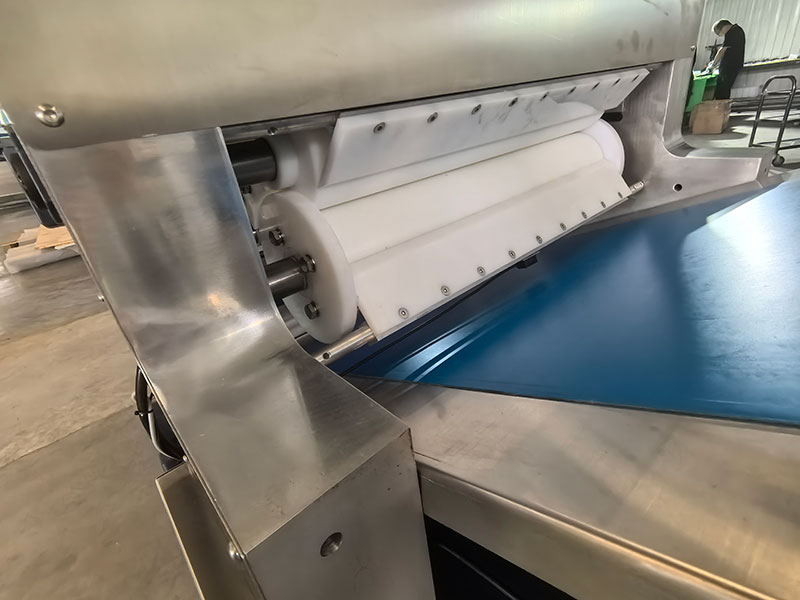 Espaçamento ajustável dos rolos: O espaçamento dos rolos pode ser ajustado de forma flexível por meio de botões ou dispositivos elétricos para atender a diferentes requisitos de espessura do produto, como invólucros de pães recheados, invólucros de bolinhos, bases de pão e outros produtos de panificação.